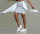 The Diana Flap Skirt is a stylish mini skirt featuring two functional side cargo pockets. Its sleek design combines a trendy, short cut with practical storage, making it both fashionable and functional.